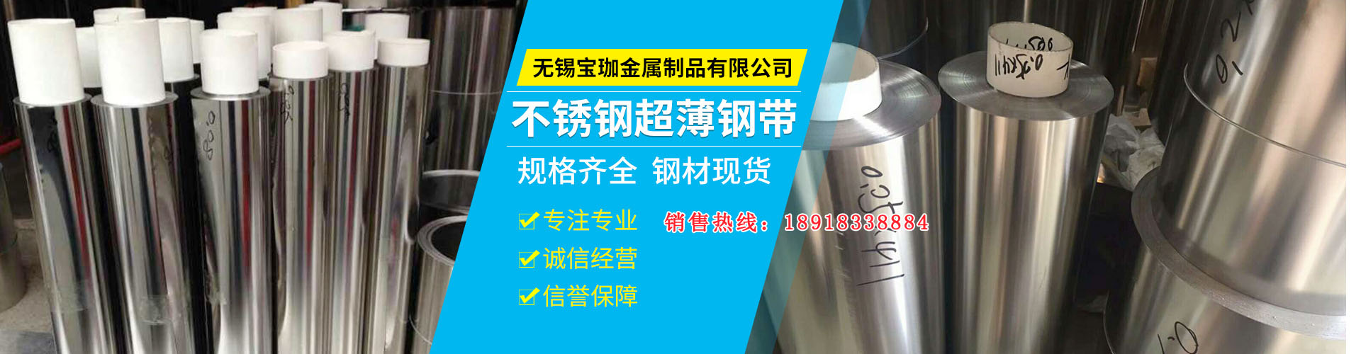 無錫寶珈金屬制品有限公司專業經營不銹鋼板卷材及不銹鋼帶的生產與銷售。長期庫存儲備進口、國產不銹鋼超薄、超硬、超平帶材,厚度從0.01mm-3.0mm,寬度最窄可分到2mm,狀態由軟、中、硬、特硬,同時可根據客戶的要求定制各種不銹鋼帶。